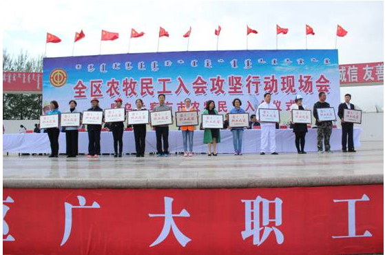 6月14日,全區(qū)農(nóng)牧民工入會(huì)攻堅(jiān)行動(dòng)現(xiàn)場(chǎng)會(huì)暨烏蘭察布市農(nóng)牧民工入會(huì)儀式在我市舉行。我公司組織30人的方隊(duì)參加了入會(huì)儀式。期間,自治區(qū)人大常委會(huì)副主任、總工會(huì)主席杭桂林,自治區(qū)總工會(huì)黨組書記、副主席崔明龍,自治區(qū)總工會(huì)副主席王麗紅,我市領(lǐng)導(dǎo)張琛、李建平、楊國文、王增強(qiáng)、王國相、于生龍,和各盟市工會(huì)分管主席、主管部門部長(zhǎng),各盟市黨委政府所在地的區(qū)(市、旗)總工會(huì)主席,各自治區(qū)產(chǎn)業(yè)工會(huì)負(fù)責(zé)人,自治區(qū)直屬機(jī)關(guān)工會(huì)工委負(fù)責(zé)人,區(qū)總相關(guān)部門負(fù)責(zé)人,市各旗縣市區(qū)工會(huì)負(fù)責(zé)人及部分市直基層工會(huì)負(fù)責(zé)人100余人來我公司進(jìn)行了實(shí)地觀摩考察。